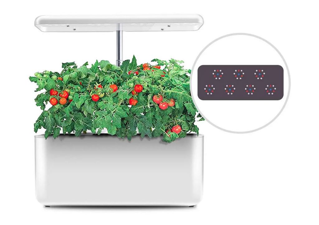 Questa sorta di “ORTO DOMESTICO” consente di coltivare fino a 7 PIANTE CONTEMPORANEAMENTE, senza l’utilizzo di terreno e anche in una stanza priva finestre! Le piante infatti riceveranno la luce, grazie ad un sistema d’illuminazione integrato, capace di irradiare le nostre piantine per determinate ore, impostabili attraverso dei pulsanti. Il sistema d’illuminazione è a LED, ad alta efficienza, da 35 WATT e a spettro completo. Le luci LED possono essere sintonizzate sulle esigenze specifiche delle piante, per massimizzare la fotosintesi, garantendo una conseguente crescita rapida e raccolti abbondanti! Vi sono luci LED diurne bianche per una crescita rapida, luci LED BLU che aumentano la resa e luci LED ROSSE che aumentano la quantità di fiori e frutti.