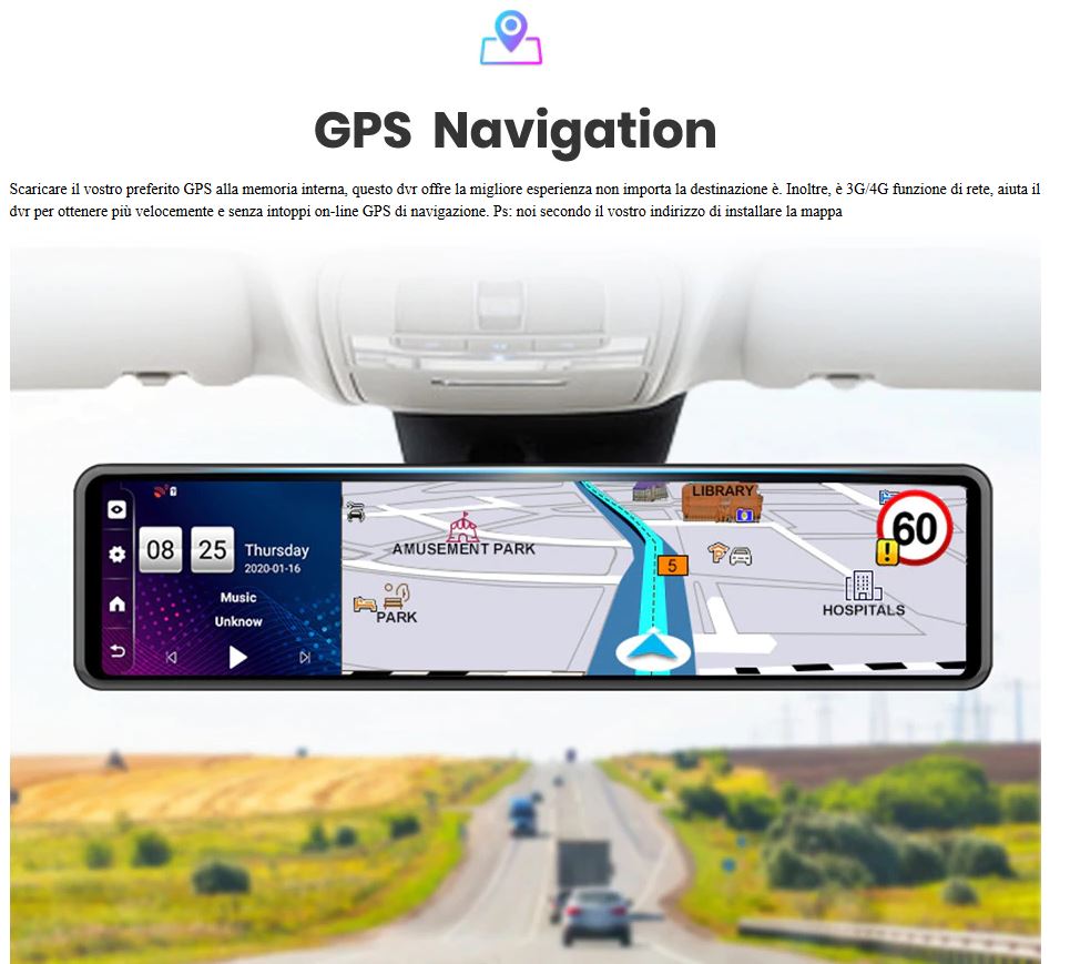 Potenziati i SISTEMI ADAS, che ci avviseranno in caso di impatto imminente, quando usciremo dalle linee di corsia o ancora con l’assistenza al parcheggio. Tramite l’APP DEDICATA sarà possibile connettersi in remoto, in qualsiasi posto e momento, al nostro “specchietto”, perché a questo punto chiamarlo specchietto è davvero riduttivo. E se non volete oscurare il vostro classico specchietto retrovisore non preoccupatevi, è acquistabile, separatamente uno STAND per posizionare il dispositivo sul cruscotto.