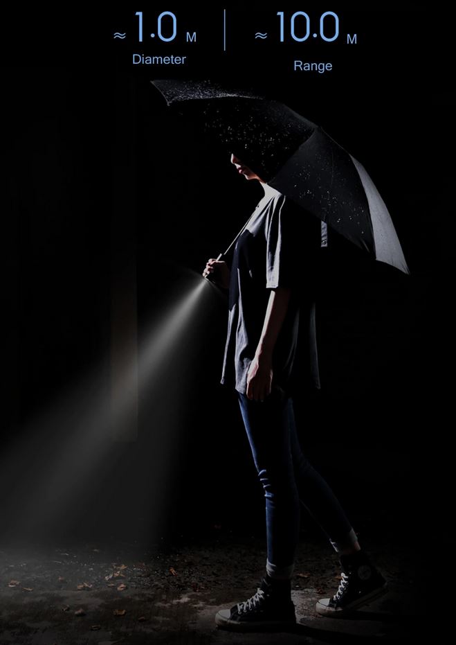 E come se tutto questo non fosse abbastanza, la parte SMART vede la presenza, nel manico e rivolta verso il basso, di una TORCIA LED con distanza utile di 10 metri circa, questa risulterà davvero utile, se non fondamentale, per evitare buche e pozzanghere quando ci cammineremo al buio e sotto la pioggia.
