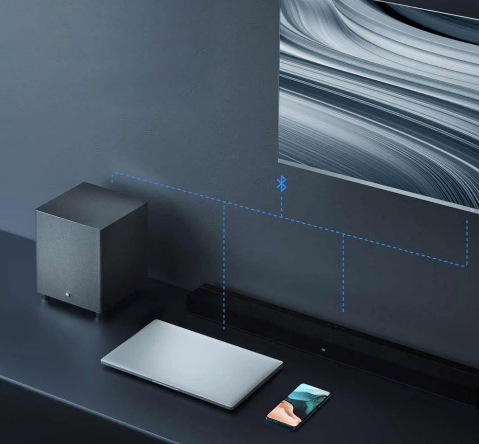 Per la prima volta XIAOMI propone un sistema HOME THEATER a 2.1 CANALI, con la Soundbar da 100 WATT di potenza, 4 unità audio integrate, BLUETOOTH 5.0 oltre ai classici ingressi AUX IN, Coaxial e Ottica, manca purtroppo la HDMI. Potrete comunque facilmente connetterla, tramite Bluetooth, a qualsiasi dispositivo, dal TV allo SMARTPHONE, i COMANDI TOUCH semplificano di molto il funzionamento.