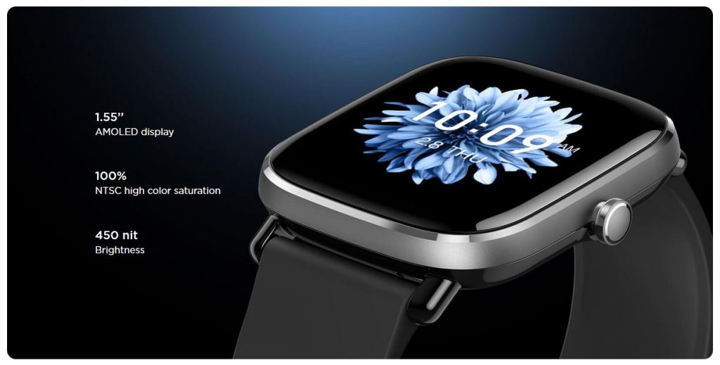 Dimensioni più compatte, con DISPLAY AMOLED DA 1.55″ (contro 1.65″ del modello base), ma con supporto, molto gradito, per l’ALWAYS ON. Il peso, grazie alle dimensioni più contenute, è di appena 19.5 GRAMMI.