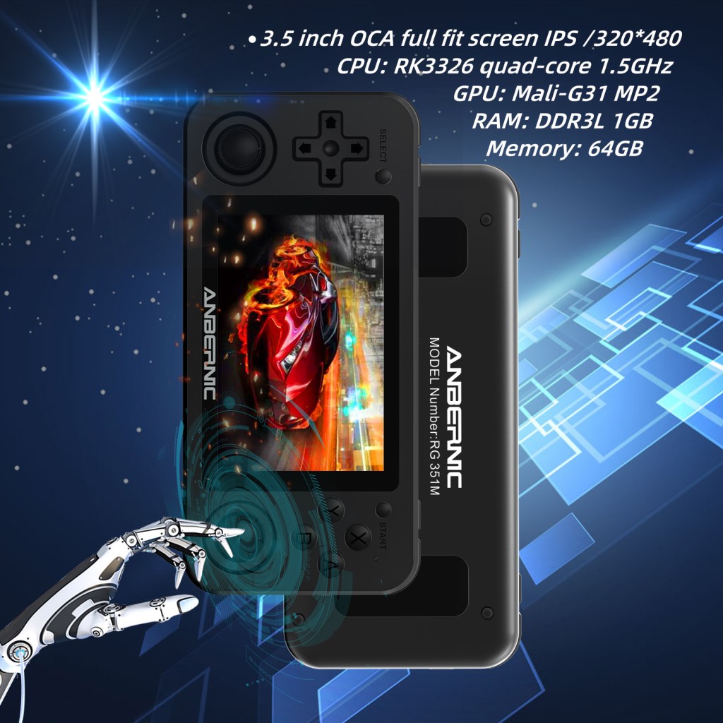 Molto semplice, la soluzione infatti porta il nome di ANBERNIC RG351M, una nuova CONSOLE DA RETROGAMING, erede della già eccellente RG350M, estremamente PORTATILE e anche ECONOMICA (che non guasta mai), molto curata nel Design, con croce direzionale, doppio stick analogico, tasti e grilletti al posto giusto, struttura in metallo e un bel DISPLAY DA 3.5 POLLICI, il tutto gira su una versione altamente personalizzata di LINUX.