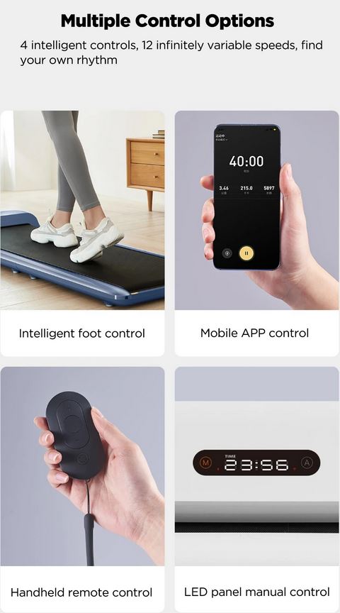 Come per il modello precedente, anche qui troviamo diversi sistemi di controllo, da quello più SMART, in cui il tappeto sarà in grado di riconoscere autonomamente la nostra andatura e regolarsi di conseguenza, passando dalla APP dedicata fino al classico TELECOMANDO WIRELESS, tutti i dati comunque verranno mostrati sul DISPLAY LED frontale.