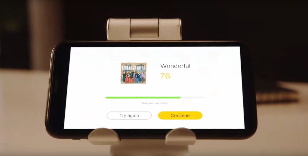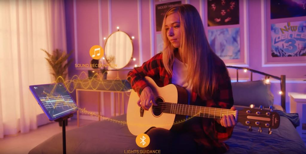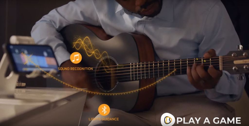 Andando a riprodurre un BRANO o seguendo il lungo e sfaccettato CORSO PER PRINCIPIANTI, il MANICO SI ILLUMINA con i suoi LED in base alla diteggiatura (note e tasti da premere), semplificandoci enormemente l’apprendimento e dando quel tocco di modernità ad uno strumento così classico. L’APP riconosce autonomamente le note senza dover collegare nessun cavo e ci correggerà in caso di errori.