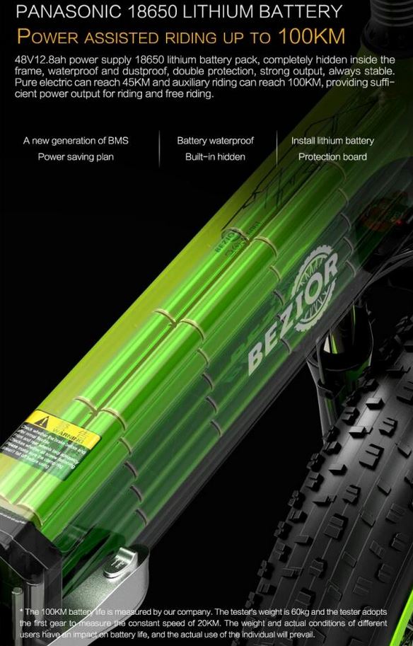 Cosa offre per questo prezzo? Innanzitutto un MOTORE BRUSHLESS DA 1500 WATT davvero potente che, abbinato alla BATTERIA PANASONIC DA 12.8AH 48V estraibile, spinge la bici fino ai 40KM/H di velocità massima (limitati) in poco meno di 5 SECONDI e 100KM DI AUTONOMIA, una vera FUORISERIE delle FAT BIKE.