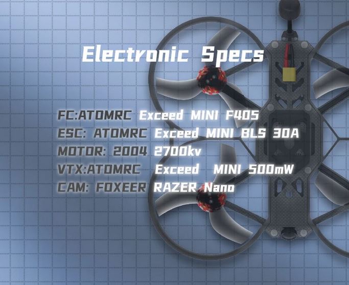 Il DRONE pesa 198 GRAMMI, monta ELICHE DA 3.5″ a tripla pala, MOTORI 2700KV e componentistica di buon livello realizzata da ATOMRC, per quanto riguarda la CAM FPV troviamo una RAZER NANO della FOXEER. La caratteristica che salta subito all’occhio però è la GABBIA IN POLICARBONATO che protegge motori ed eliche, riuscire a danneggiare questo quadricottero è davvero difficile, anche per i più inesperti! Non manca ovviamente tutto lo spazio necessario per montare una CAM AGGIUNTIVA, come GOPRO o INSTA360 (da acquistare separatamente).