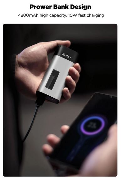 Ma non è tutto, integra la suo interno una BATTERIA DA 4800MAH che, in caso di emergenza, può essere utilizzata per RICARICARE A 10 WATT IL NOSTRO SMARTPHONE (o qualsiasi altro dispositivo USB).
