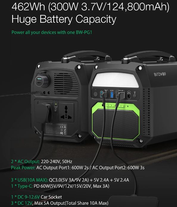 Il BW-PG1 è descritto come una grande POWER BANK da ben 124.800MAH e 300 WATT, in grado di ricaricare o alimentare praticamente qualsiasi vostro dispositivo elettronico in totale sicurezza.