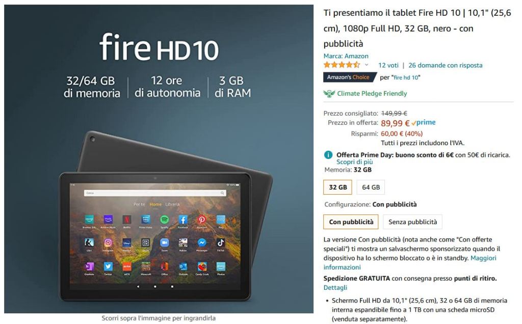 TABLET FIRE HD 10 è l’ultimo TABLET di AMAZON, ancora più veloce e reattivo, a questo prezzo poi (89 EURO) è un vero BEST BUY!