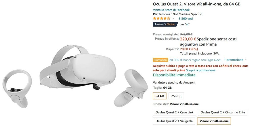 OCULUS QUEST 2, il più recente (e acquistato) VISORE di realtà virtuale di FACEBOOK, potrete divertirvi senza cavi e fili ad intralciarvi… è il vero futuro ve lo garantisco, ed è scontato a 329 EURO, ne ho realizzato anche una VIDEORECENSIONE!