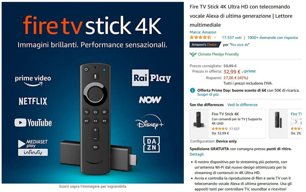 AMAZON FIRE TV STICK 4K a soli 32 EURO, con questa “CHIAVETTA” potrete rendere la vostra TV ancora più SMART di quanto già non lo sia, con pieno supporto ai principali servizi di Streaming Video!