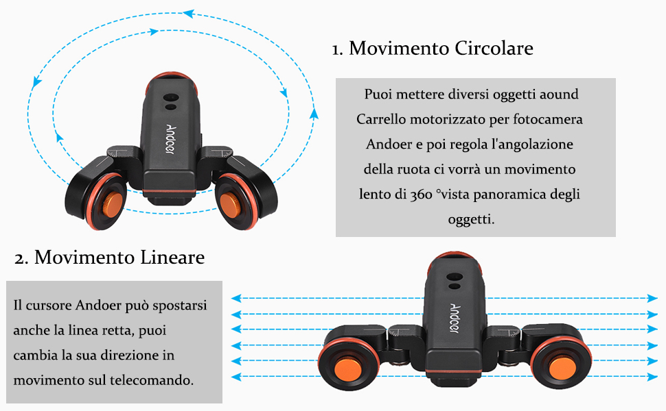 ANDOER L4 PRO è un prodotto a parer nostro davvero RIVOLUZIONARIO e GENIALE, si tratta di una sorta di ROBOT MOTORIZZATO dotato 3 RUOTE GOMMATE (e annessi motori) dalle dimensioni super compatte, si richiude e possiamo portarlo con noi magari nella borsa della fotocamera