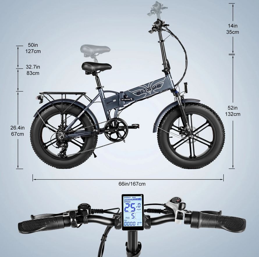 Quella di cui vi parliamo oggi non è una semplice BICI ELETTRICA (o E-BIKE se preferite), ma si tratta di una delle PIÙ POTENTI FAT BIKE IN COMMERCIO, che prende il nome di ENGWE EP-2 PRO. Con il suo TELAIO IN ALLUMINIO PIEGHEVOLE e le grafiche accattivanti si fa subito riconoscere, non manca nemmeno il COMFORT offerto dalle grosse RUOTE FAT 20×4.0 POLLICI, FORCELLA ANTERIORE, PARAFANGHI, FRENI A DISCO, FARO LED, STOP POSTERIORE e PORTAPACCHI, completissima in tutto.