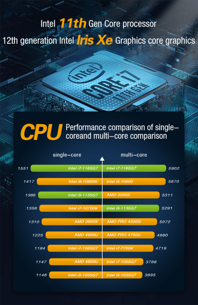 Sotto la scocca invece troviamo una potentissima CPU INTEL I5-1135G7 di ultima generazione, dissipata con ventola e doppia heat pipe, GPU INTEL IRIS XE, 16GB DI MEMORIA RAM + 1TB DI STORAGE SSD, a cui si aggiunge la connettività WI-FI 6, BLUETOOTH 5.0, PORTE USB e persino una THUNDERBOLT 4, le porte sono presenti sulla DOCK STATION. Stiamo parlando insomma di un Hardware decisamente importante, la BATTERIA INTEGRATA garantisce fino a 3 ORE DI AUTONOMIA sotto carico pesante.