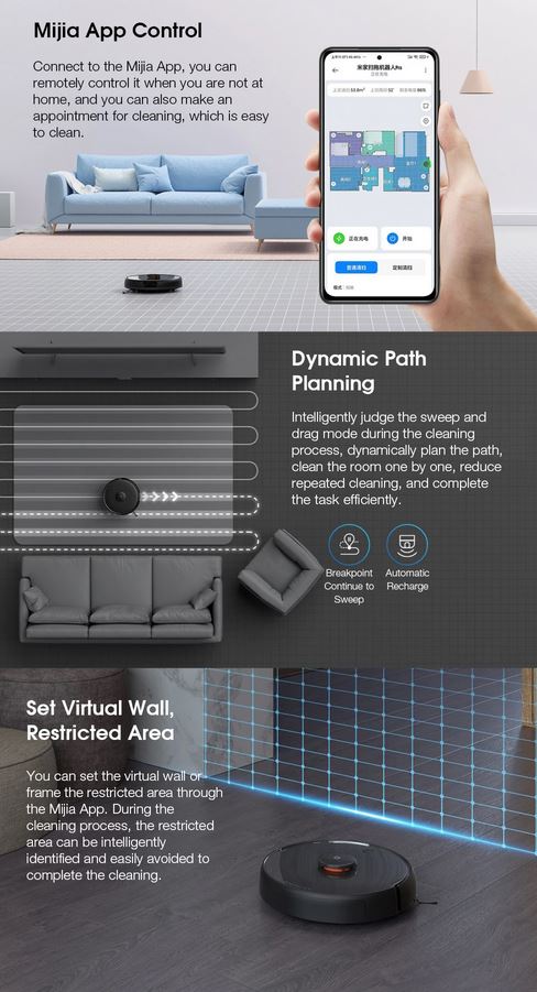 Il nuovo XIAOMI MIJIA ROBOT PRO migliora notevolmente questo aspetto per mezzo della nuova tecnologia 3D TOF + VISUAL RECOGNITION FUSION ALGORITHM coadiuvata dal DOPPIO PROCESSORE. Alla TORRETTA LASER infatti si affianca un DOPPIO SISTEMA OTTICO, ricreando nella sua memoria un vero e proprio AMBIENTE VIRTUALE 3D con calcolo autonomo della distanza da eventuali ostacoli.