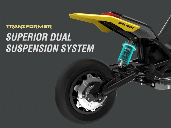Le RUOTE DA 10″ supportate dalla FORCELLA ANTERIORE + MONO POSTERIORE e dal DOPPIO FRENO A DISCO garantiscono il massimo del comfort e frenate in spazi estremamente ridotti, la ciclistica di questo mezzo ha ben poco da invidiare ad una classica moto di bassa cilindrata.