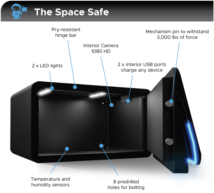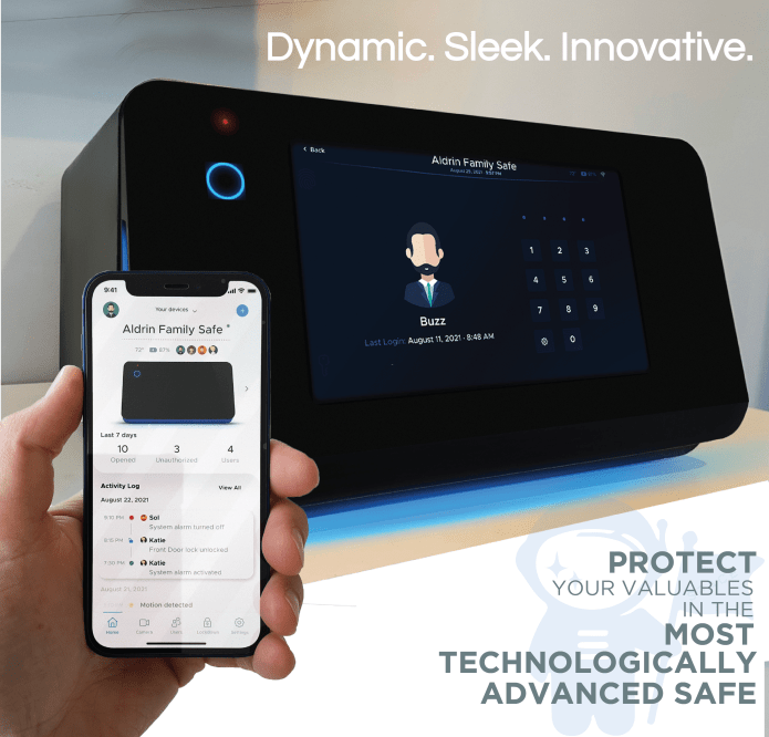 THE SPACE SAFE con il suo DESIGN FUTURISTICO si contraddistingue da qualsiasi altra cassetta portavalori voi abbiate mai visto. Sulla parte frontale troviamo una STRISCIA LED RGB ed un grande DISPLAY TOUCH LCD DA 10 POLLICI con cui potremo inserire il PIN di apertura o interfacciarci al nostro SMARTPHONE. Grazie all’APP DEDICATA infatti riceveremo notifiche immediate su aperture o eventuali manomissioni… e non finisce qui!