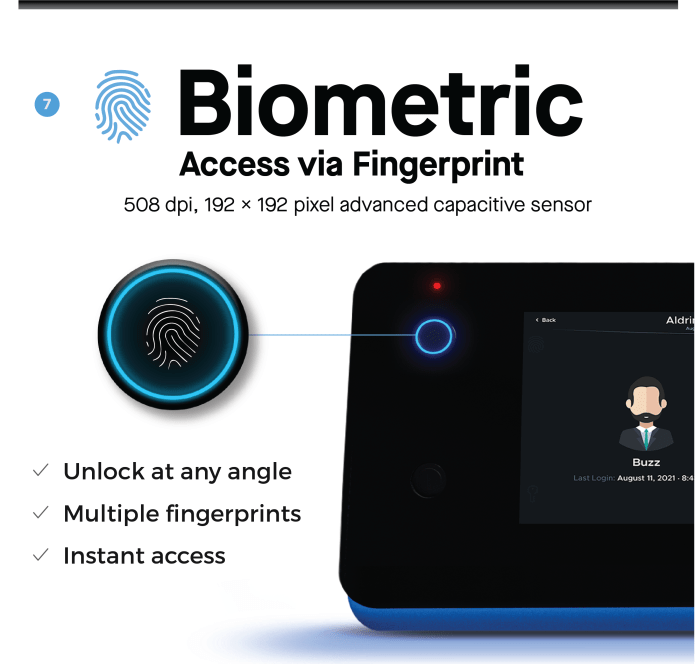 Il sistema operativo permette di registrare fino a 4 UTENTI CONTEMPORANEAMENTE con rispettive IMPRONTE DIGITALI, adatta quindi anche per le famiglie. Concludono la ricca dotazione i SENSORI DI TEMPERATURA E UMIDITÀ INTERNE, sempre monitorabili tramite l’applicazione, una CASSETTA DI SICUREZZA a prova di LUPIN insomma!
