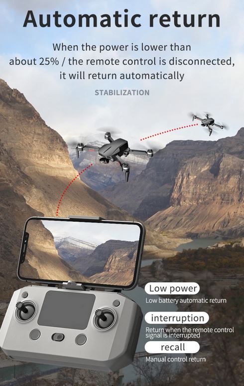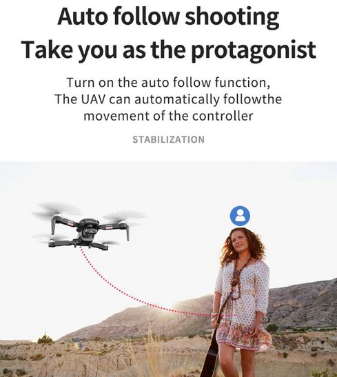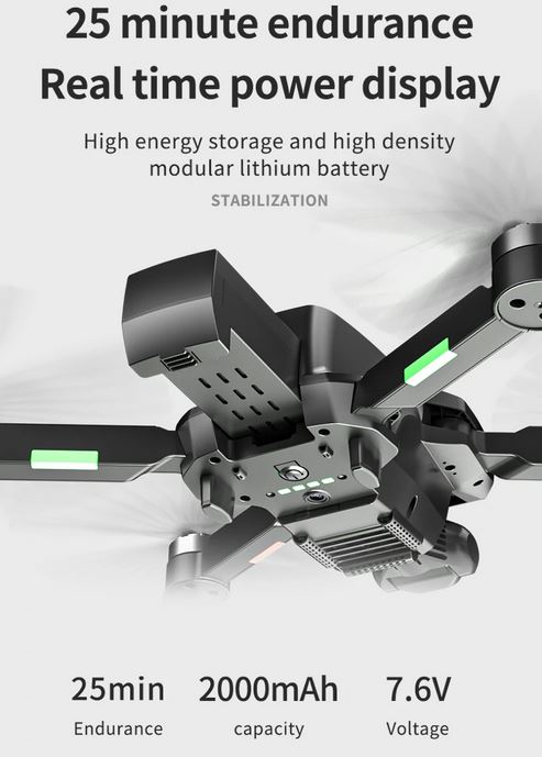 Frontalmente troviamo una CAM 4K (non sono specificati altri dettagli sul sensore) con GIMBAL MECCANICO A 3 ASSI che dovrebbe garantire, sempre sulla carta, riprese stabili e utilizzabili senza troppi problemi sui social, non si tratta ovviamente di un Drone con velleità professionali.