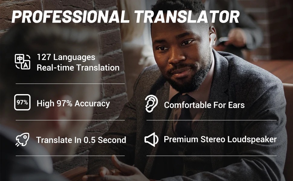 Tramite l’APP DEDICATA da installare sul nostro smartphone, una volta selezionata la lingua da tradurre e quella di destinazione gli auricolari faranno tutto il resto, i MICROFONI integrati cattureranno la voce e andranno a trascriverla sull’applicazione (che potrà essere aperta anche in un secondo momento), traducendola in MENO DI 1 SECONDO.