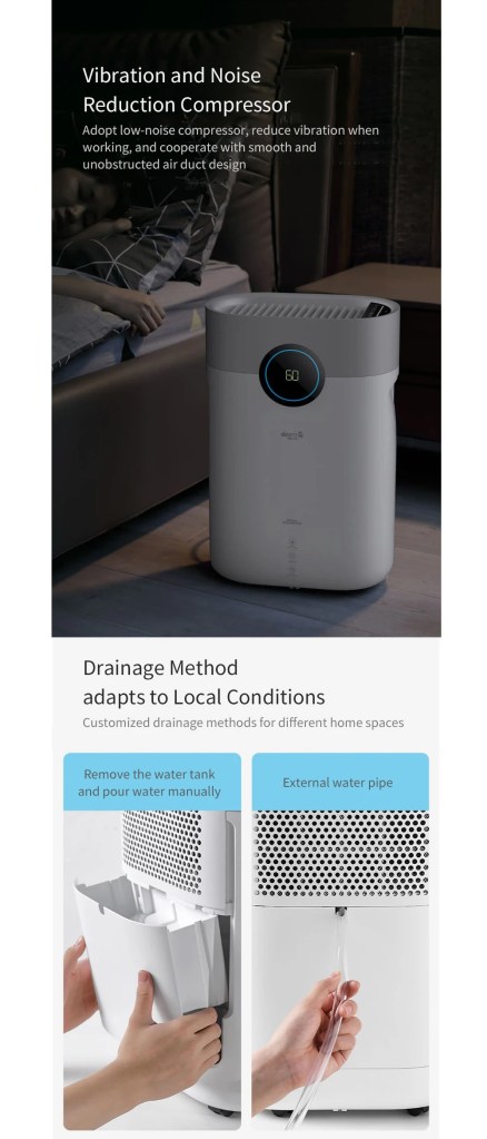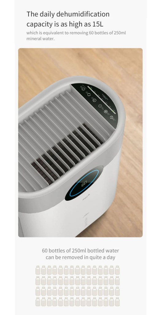 Lo XIAOMI DEERMA DEM DT16C oltre a fare tutto questo è anche un DEUMIDIFICATORE in grado, grazie al suo sistema brevettato, di DRENARE fino a 15 LITRI di umidità al giorno, praticamente l’equivalente di 60 bottiglie da 250ml, mica male! Ricordatevi ovviamente di svuotare il contenitore d’acqua manualmente o collegando il tubo di scarico incluso in confezione.