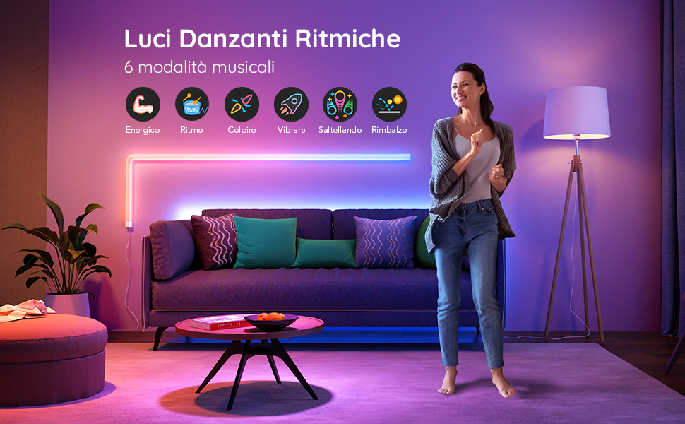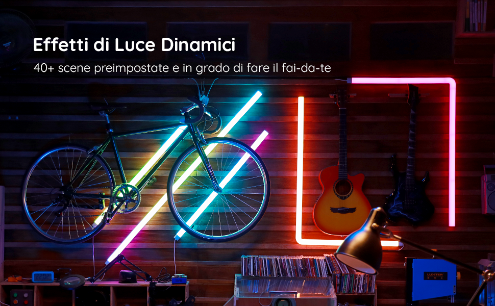 Il SISTEMA DI ILLUMINAZIONE BREVETTATO RGBIC permette a GLIDE WALL LIGHT di visualizzare fino a 57 COLORI ALLA VOLTA e 16 MILIONI DI COLORI IN TOTALE, dando liberò sfogo alla nostra fantasia con combinazioni multicolore belle e fluide da vedere.