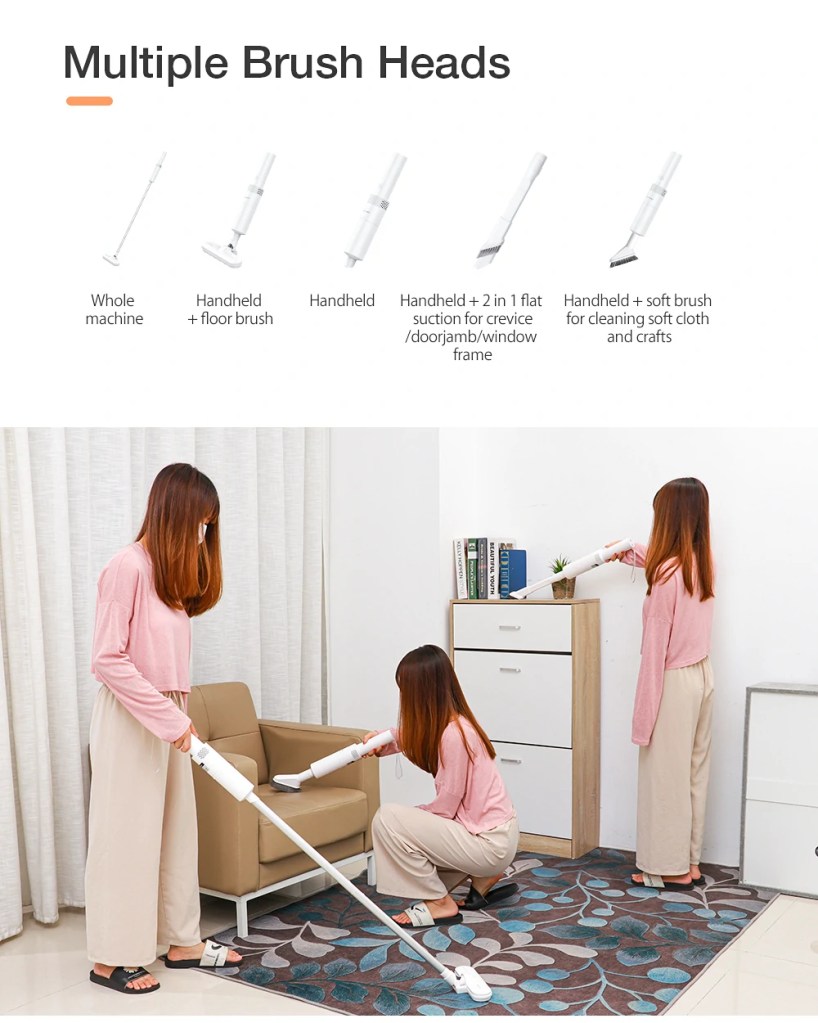 Grazie al suo MOTORE DA 100W garantisce fino ai 15KPA di potenza di aspirazione, un valore decisamente elevato, potremo persino impostare la velocità di aspirazione su due livelli. La BATTERIA INTEGRATA RICARICABILE da 2200MAH non è enorme ma dovrebbe permetterci fino a 30 MINUTI DI AUTONOMIA con una singola carica. In compenso il peso di 700 GRAMMI TOTALI è davvero ridotto, rendendo questa scopa estremamente maneggevole.