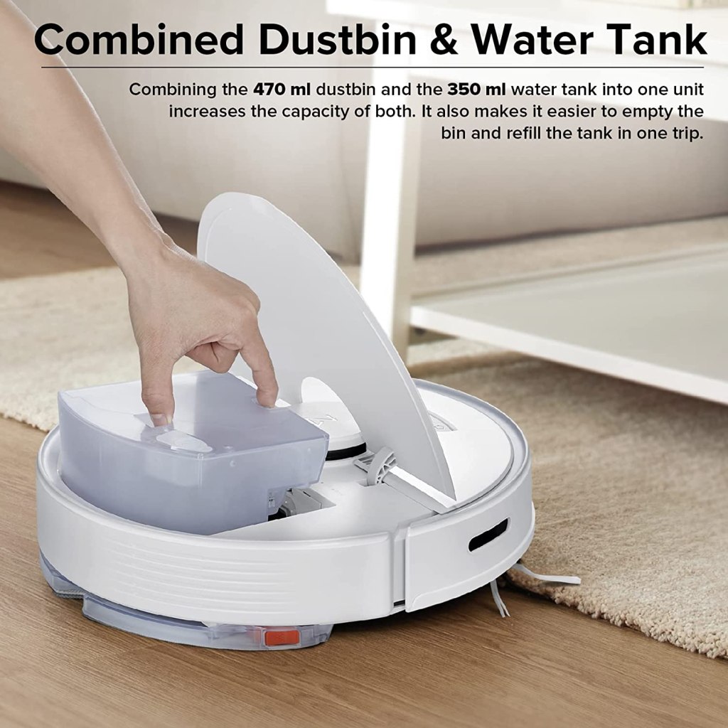 Questo ROBOT non teme nulla, dall’ASPIRAZIONE (con un serbatoio per la polvere da 470ML) alla funzione LAVAPAVIMENTI (serbatoio da 350ML), che combinati ad una BATTERIA INTEGRATA DA 5200MAH garantisce fino alle 3 ORE DI AUTONOMIA COMPLESSIVE con una singola carica, una volta scarico tornerà autonomamente alla base di ricarica.