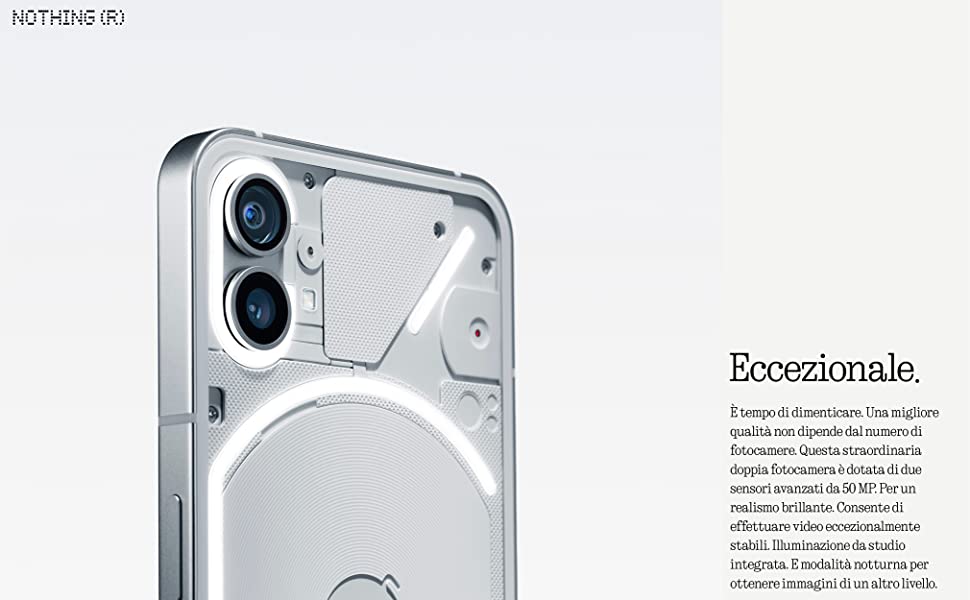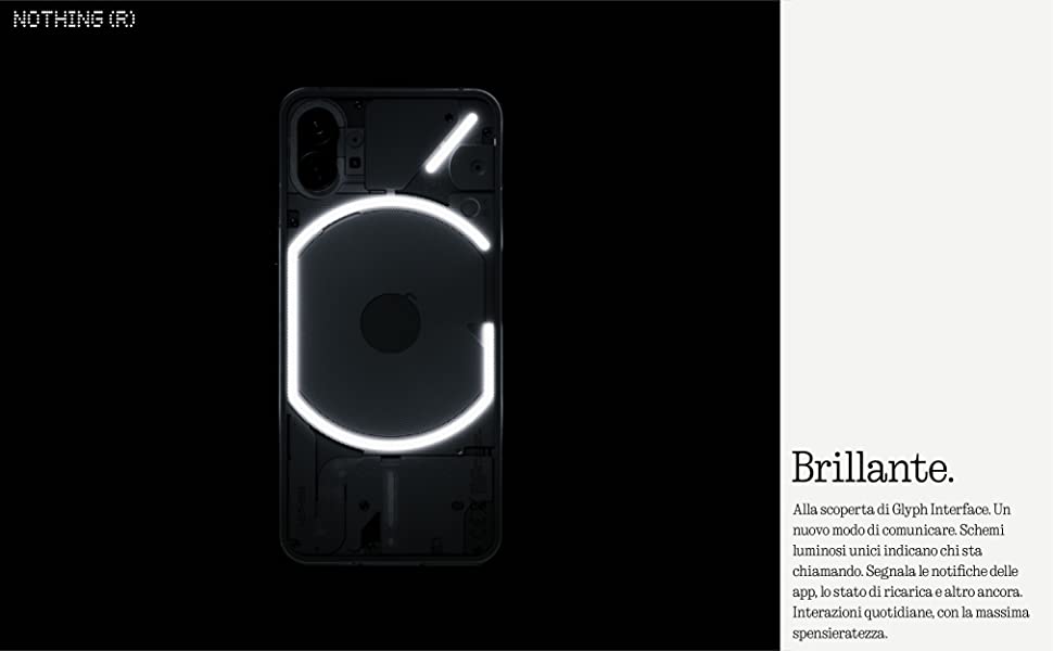 Nothing ha pensato a tutto ed ha dotato il suo primo dispositivo RICARICA RAPIDA, WIRELESS e INVERSA con 18 ORE DI AUTONOMIA, NFC, VIDEO 4K/60FPS ed una fenomenale GLYPH INTERFACE, una serie di LED POSTERIORI che andranno ad indicare chi ci sta chiamando, lo stato di carica, interazioni quotidiane e tanto altro ancora, a patto di non coprirla con una cover ovviamente, ma basta questo per definirlo “l’anti smartphone”?