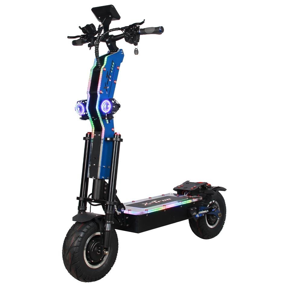 La velocità consigliata dall’azienda è ovviamente di 25KM/H, ma chiedere a X-TRON VIPER PRO di “spingersi” a velocità di questo tipo significa circolare con un mezzo estremamente pesante, goffo nei cambi di direzione e lento per le sue capacità. A piena potenza il DOPPIO MOTORE ELETTRICO DA 8000 WATT TOTALI con BATTERIA DA 45AH 72V è in grado di spingerlo a OLTRE 100KM/H, con 100KM DI AUTONOMIA e CARICO MASSIMO DI 200KG, numeri che farebbero impallidire persino auto o moto di piccola cilindrata.